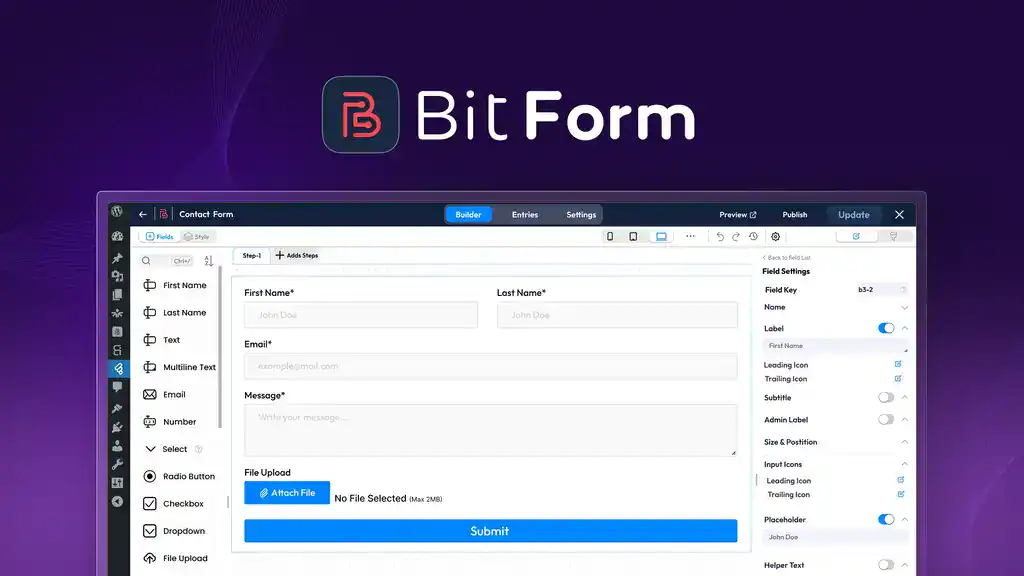 Need a survey or a longer lead form? Bit Form supports multi-step forms, making the process smooth for users. With conditional logic, you can show or hide fields based on answers, keeping forms clean and smart.