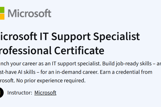 Course Review Course Review: Microsoft IT Support: Your Launchpad into Tech Professional Certificate by Microsoft (Coursera)