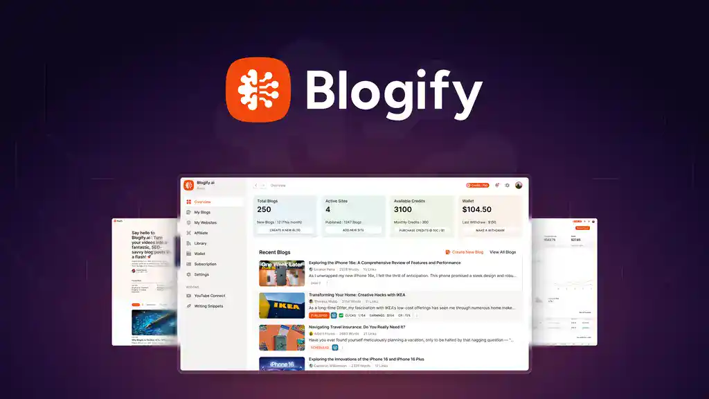 Blogging can be hard. You need to write, edit, optimize, and promote your posts. Blogify.ai makes this easy. It uses AI to help you write, publish, and earn from your blog—fast and stress-free.